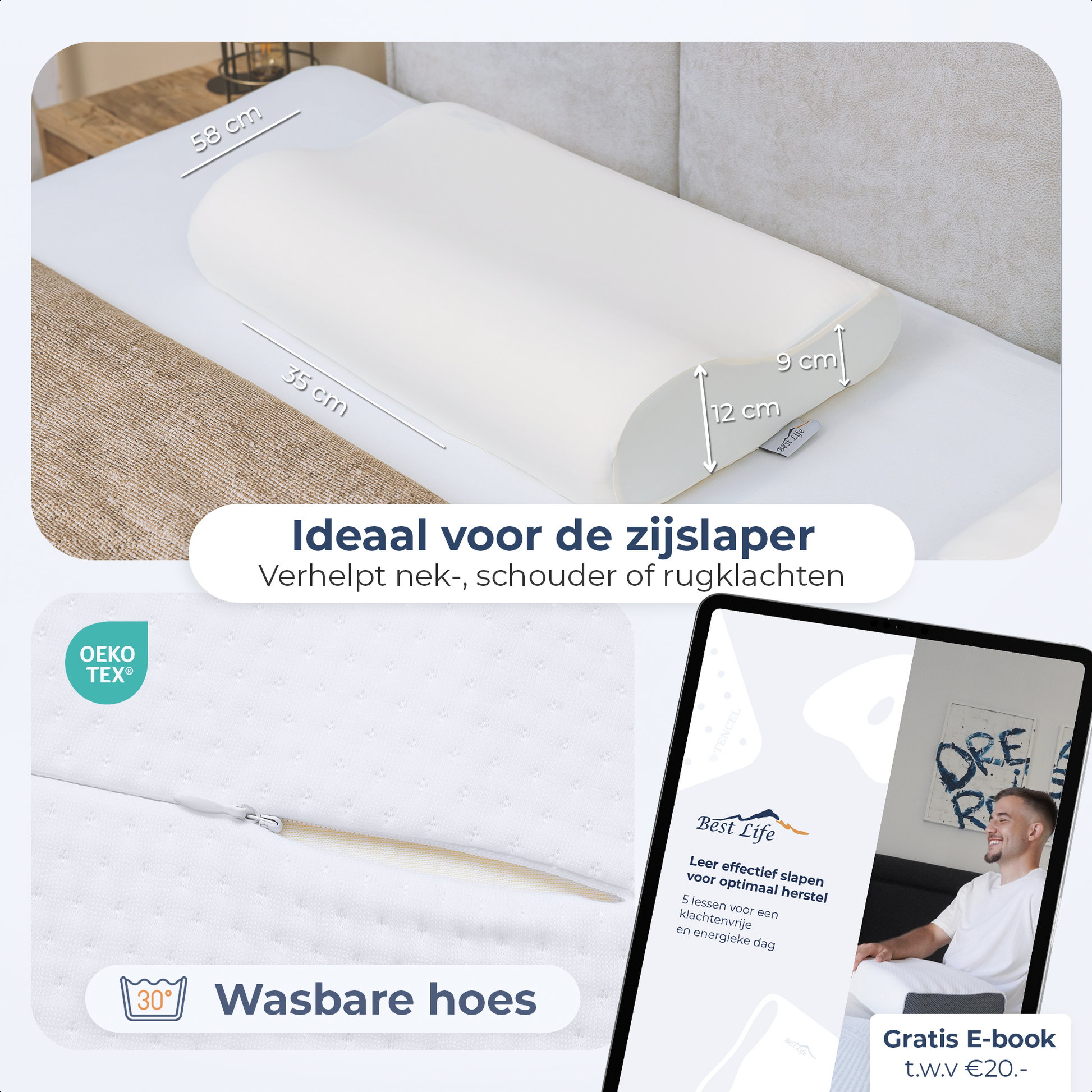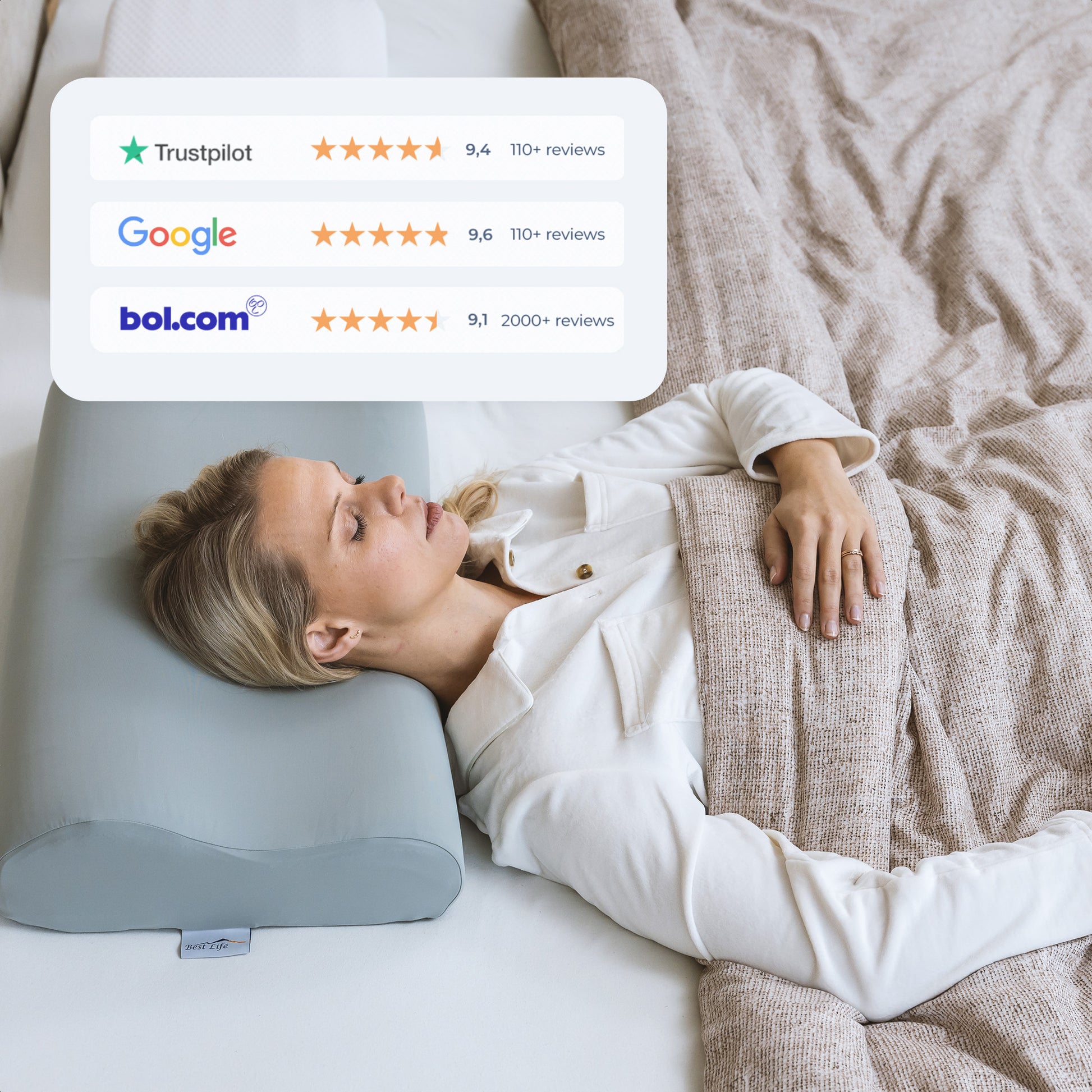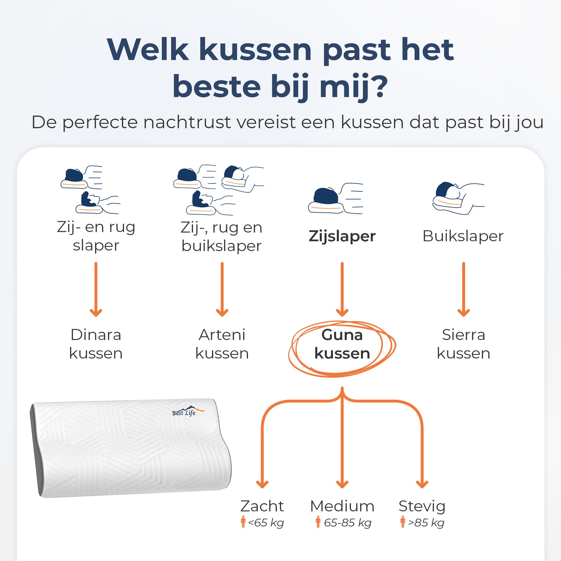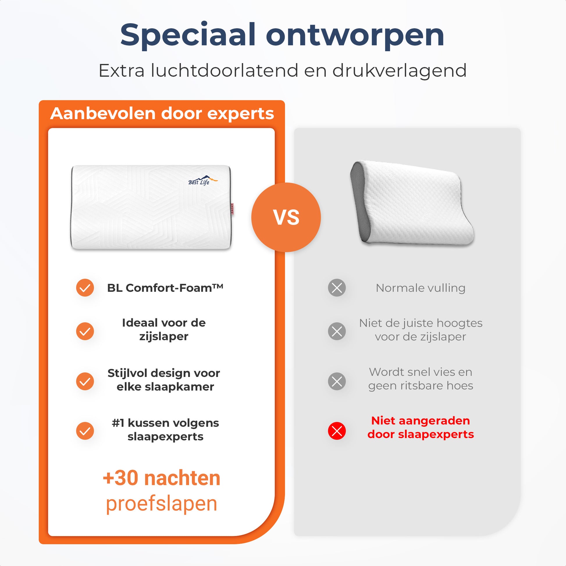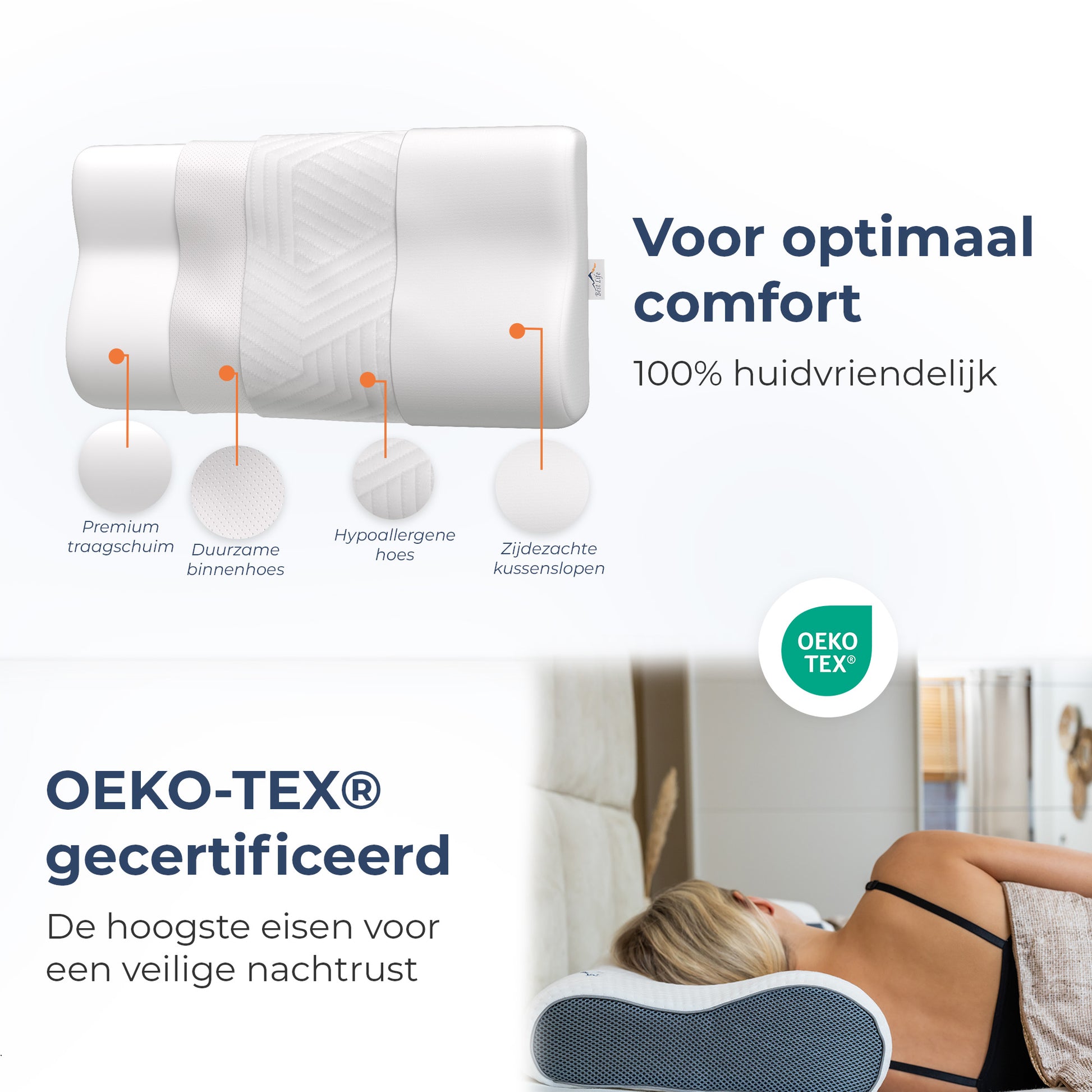 Elk kussen van Best Life bevat BL Comfort-Foam™ traagschuim.