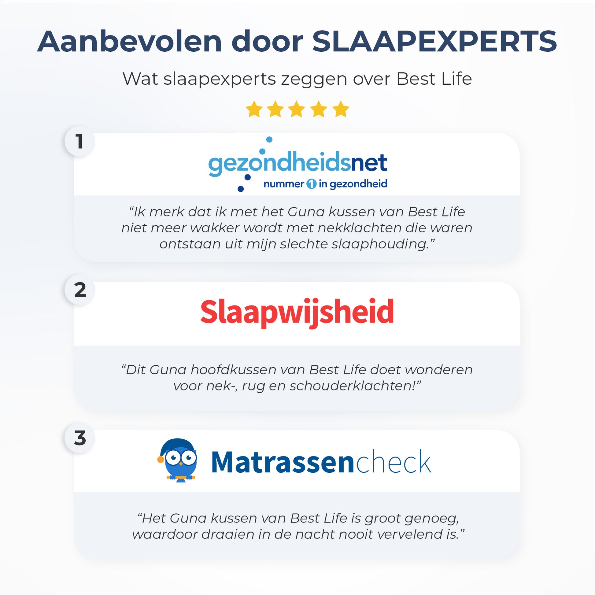 Het hoofdkussen Guna scoort een 4,8 uit 5 sterren, met meer dan 1000 beoordelingen. Dit maakt het hoofdkussen Guna het best beoordeelde kussen in Nederland.