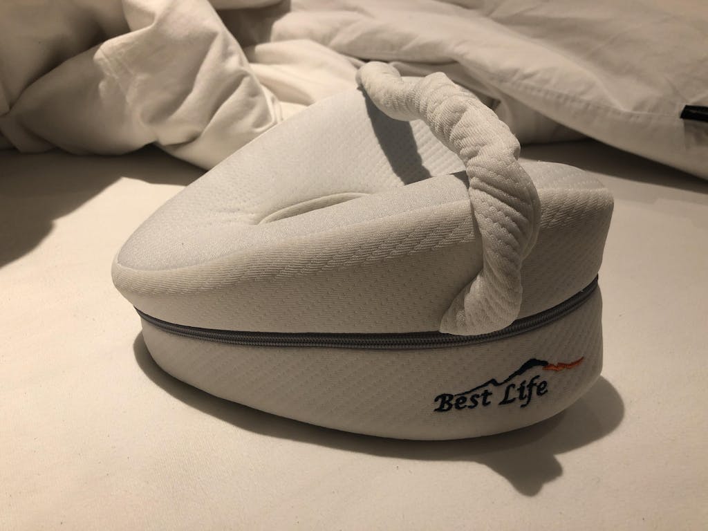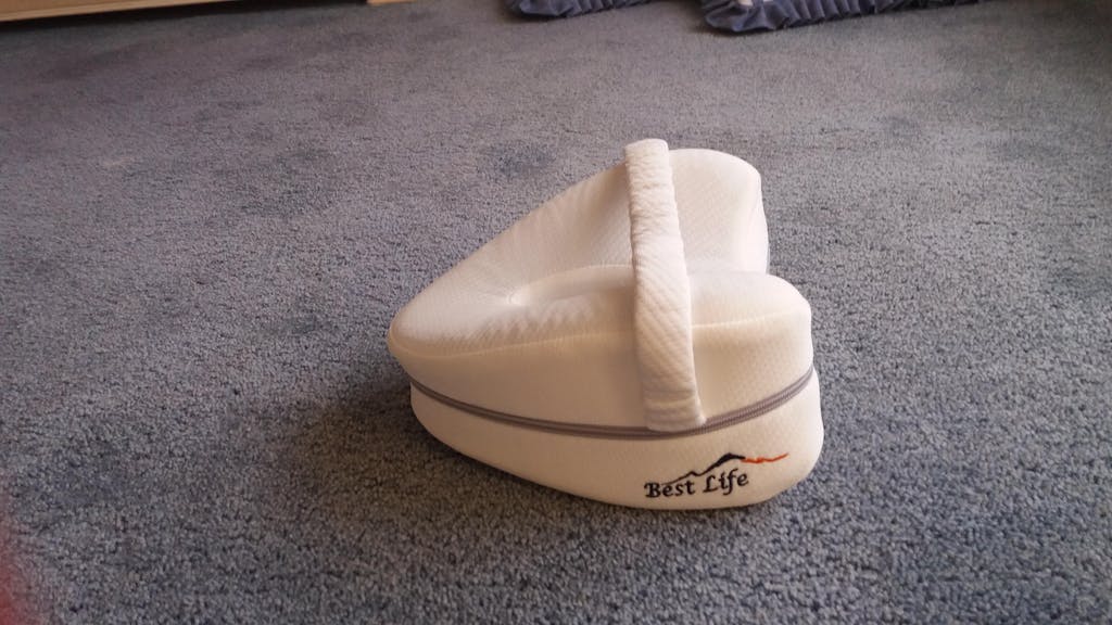 Hoewel het wel even wennen is met zo'n klots tussen je knieën te slapen, merk ik wel dat 's nachts omdraaien in bed (waarbij ik het kussen geklemd hou tussen 2 knieën) nu pijnvrij gaat.