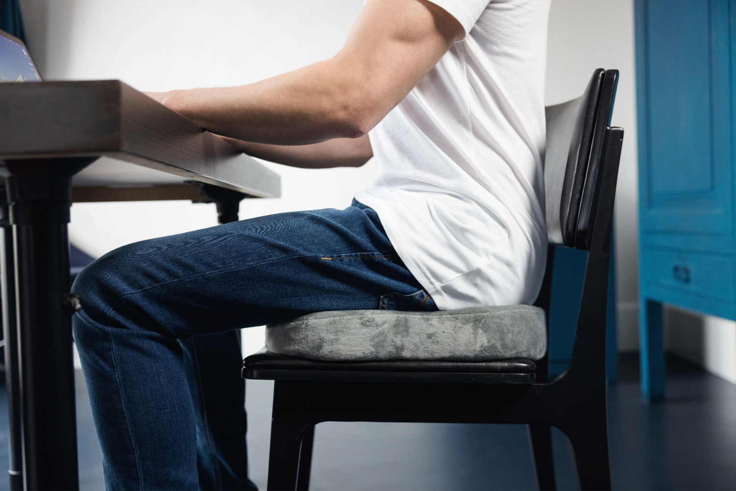 Het stuitkussen vermindert druk op het stuitje, de onderrug en heupen en helpt bij comfortabeler zitten — thuis, op kantoor of onderweg.
