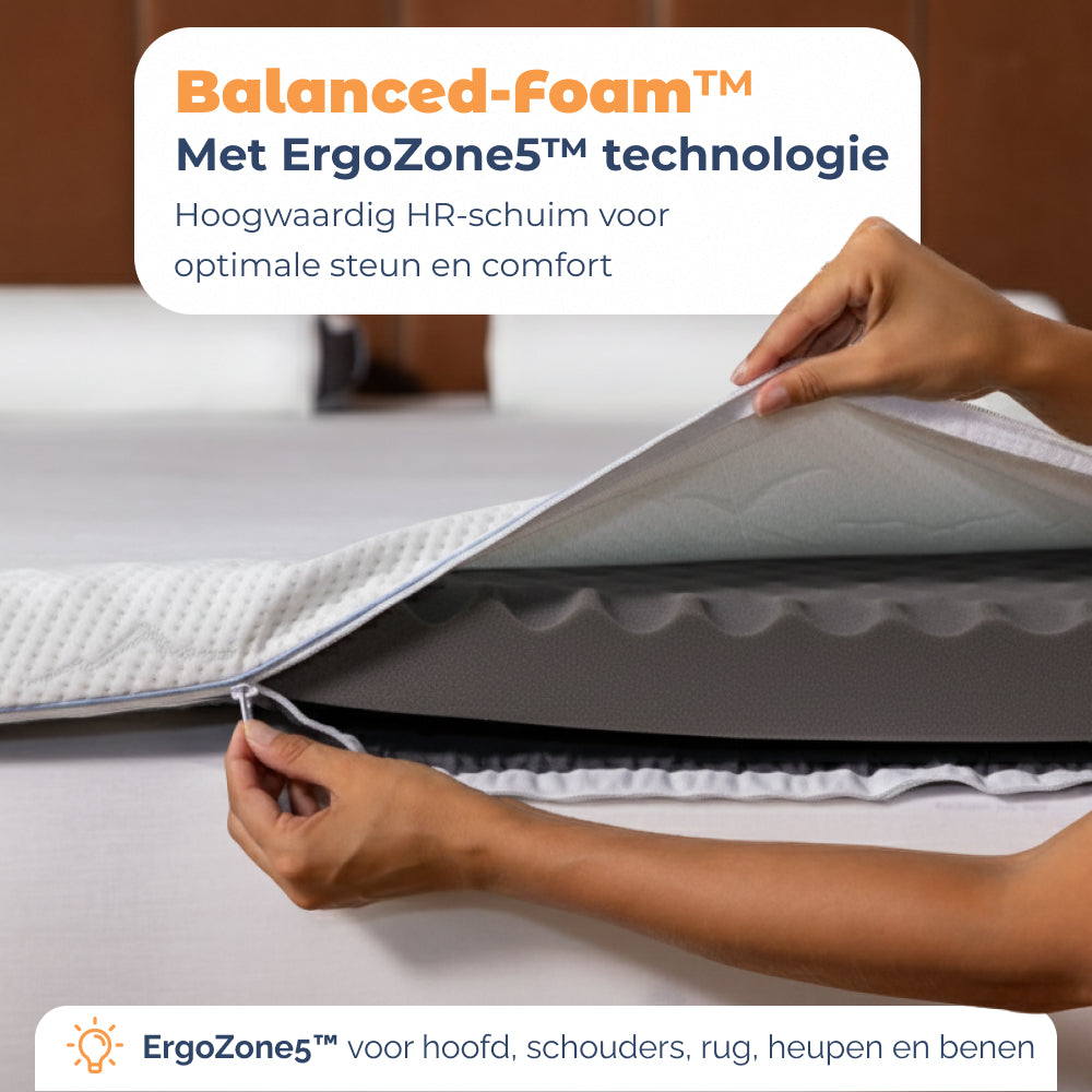 "Deze ergonomische topper is ontworpen voor optimale ondersteuning en comfort, waardoor je slaapkwaliteit aanzienlijk verbetert."