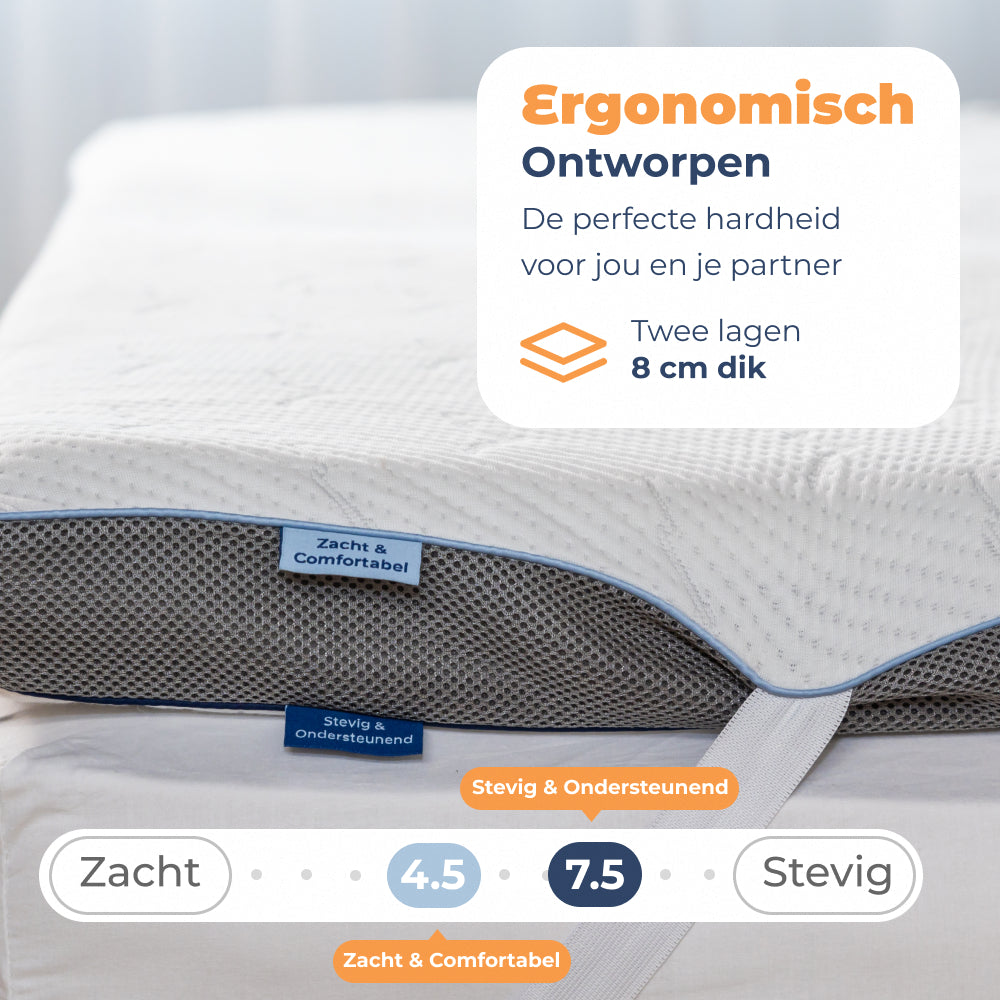 "Deze ergonomische topper is ontworpen voor optimale ondersteuning en comfort, waardoor je slaapkwaliteit aanzienlijk verbetert."