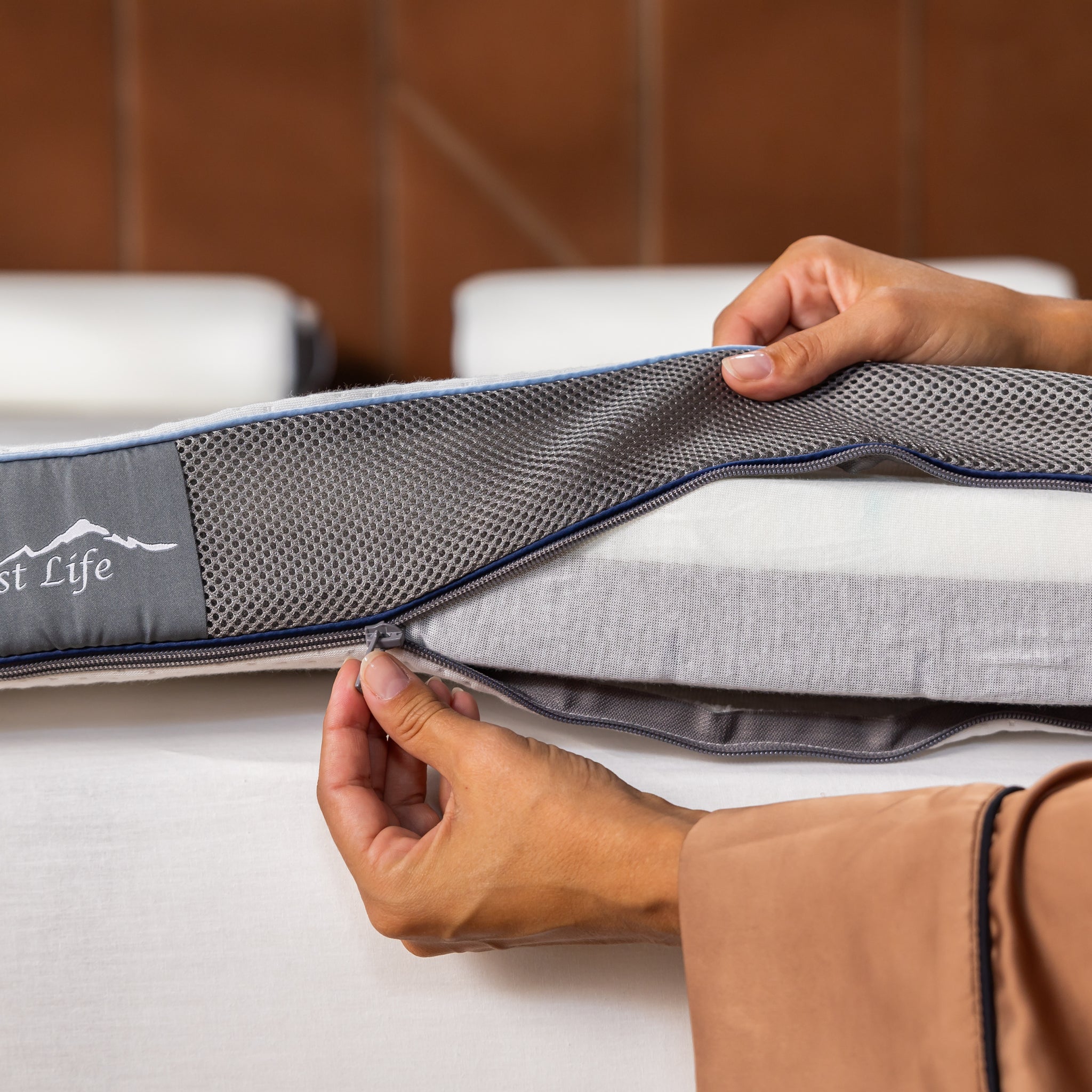De vier elastische banden zorgen ervoor dat de topper stevig op zijn plek blijft liggen, zelfs bij veel beweging tijdens de nacht. Dankzij de 180° rits verwijder je de hoes eenvoudig voor een wasbeurt, waardoor onderhoud snel en gemakkelijk is.