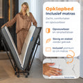 Dankzij het doordachte scharniersysteem is dit vouwbed in enkele seconden in- en uit te klappen.